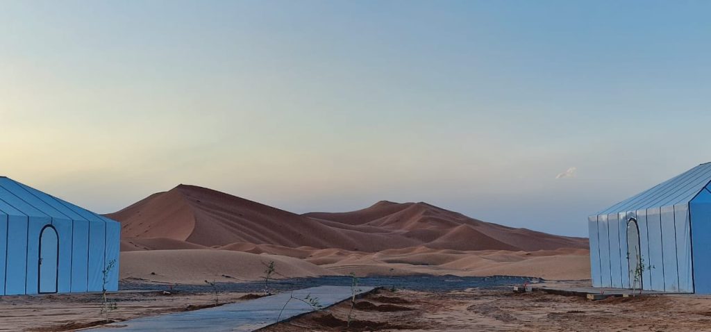 Vive la experiencia y disfruta del desierto como un auténtico bereber en nuestro propio campamento. ¡Sin intermediarios! Contamos con jaimas preparadas y equipadas para que puedas disfrutar de unos días inolvidables. Disponibles para 2,3 y 4 personas, cuentan con baño privado. Además, disponemos de cocina y restaurante propios. ¿Te lo vas a perder? ¡Próximamente anunciaremos fechas de inauguración! Te esperamos.